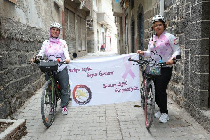 Farkındalık çalışmalarına kendi yaşam öyküleriyle katkı sunan iki kadın Emine Aktürk ve Fadime Yıldız. Meme kanserini yenerek hayata tutunan iki kadın, erken teşhisin önemini hatırlatmak için bisikletleriyle yollara çıktı. İzmir’den başladıkları farkındalık yolculuğunda 21 gün boyunca onlarca kenti gezdi; özellikle deprem yıkımı yaşayan kentlerdeki kadınlarla buluştular. Mêrdîn, Riha (Urfa), Dîlok (Antep) ve son olarak Amed’e ulaşan kadınlar, hem kanser hastalarına moral verdi hem de erken tanının hayat kurtardığını anlattı. Yolculuklarının bir sonraki durağı ise Kıbrıs olacak.
