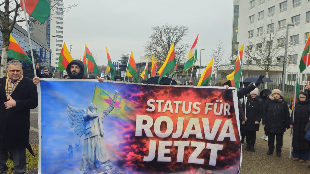 Almanya’nın Bonn kentinde bulunan Birleşmiş Milletler (BM) Kampüsü önünde, Rojava’nın siyasi statüsünün tanınması ve bölgedeki kazanımların korunması talebiyle kitlesel bir eylem gerçekleştirildi.