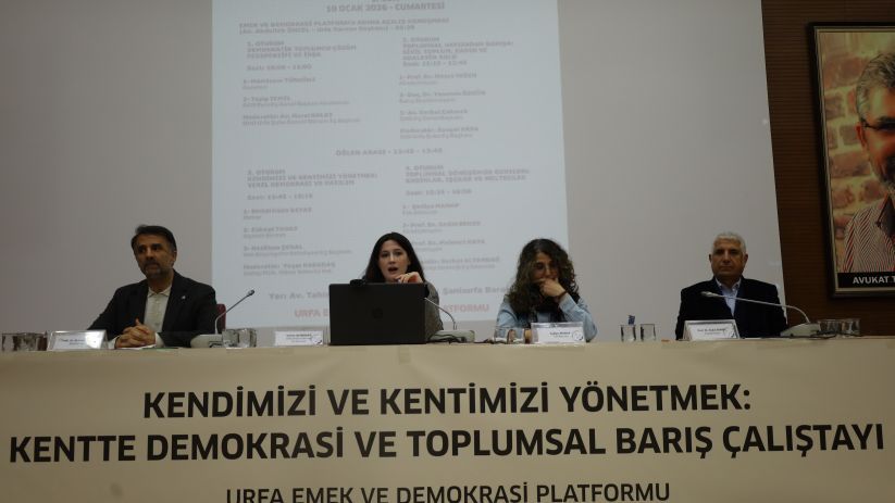 Riha’da (Urfa) Emek ve Demokrasi Platformu öncülüğünde, “Kendimizi ve kentimizi yönetmek: Kentte demokrasi ve toplumsal barış” şiarıyla gerçekleşen çalıştay, 4’üncü oturumuyla devam etti. Riha Barosu Tahir Elçi Konferans Salonun’da gerçekleştirilen üçüncü oturumda, “Toplumsal dönüşümün özneleri: Kadınlar, işçiler ve mülteciler” konusu işlendi. ÖHD Riha Şube üyesi Melis Can Güneş moderatörlüğünde başlayan son oturuma, Tevgera Jinên Azad’lı (TJA) Şadiye Manap, Prof. Dr. Sedat Benek ve Prof. Dr. Mahmut Kaya panelist olarak katıldı.
