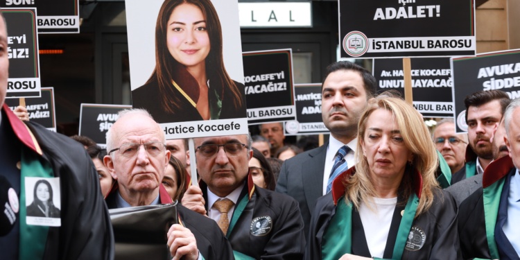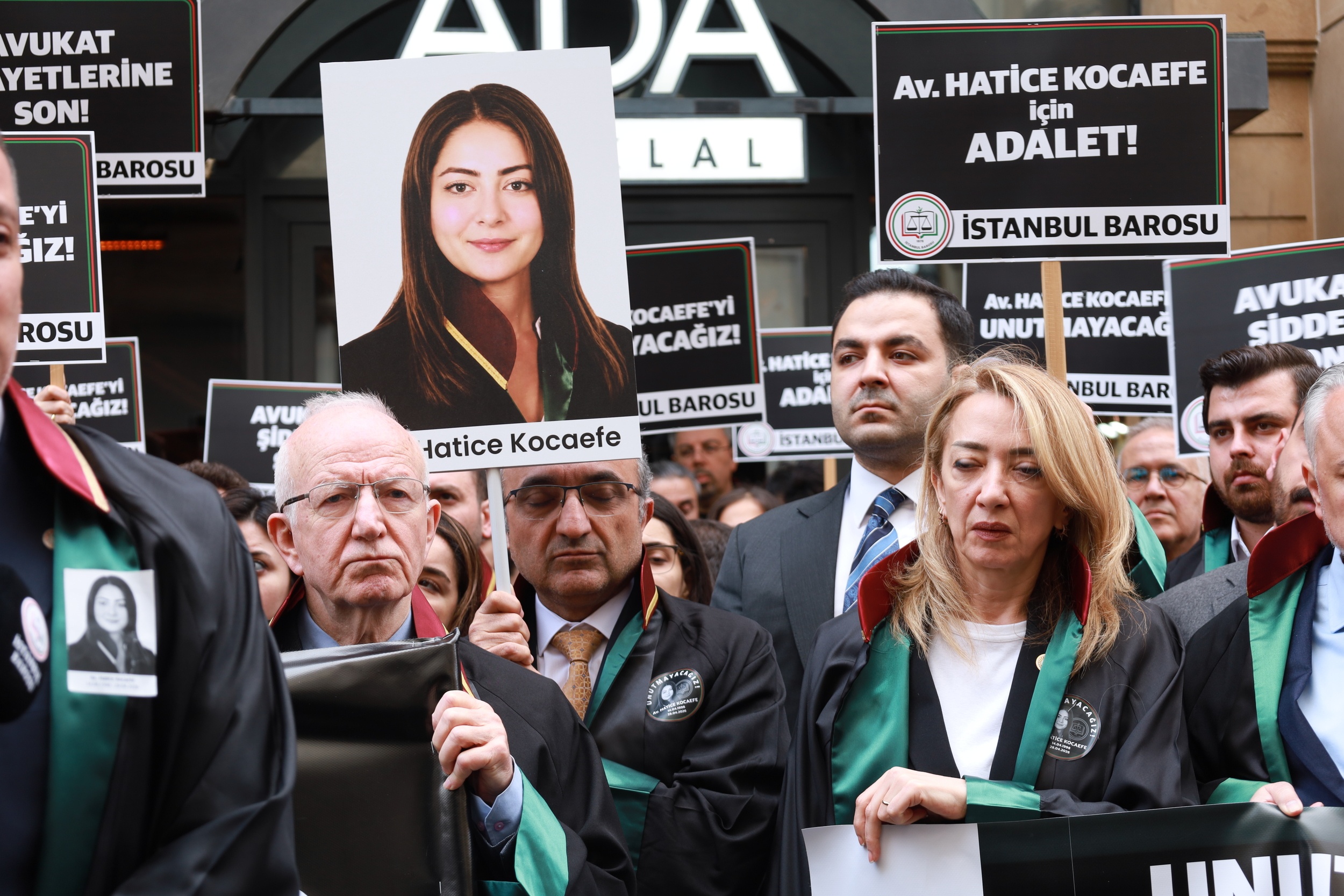 İstanbul Barosu, Bursa’da Avukat Hatice Kocaefe’nin katledilmesini protesto etmek amacıyla Beyoğlu’nda bulunan İstanbul Barosu Merkez Binası, Bakırköy İncirli Ömür Plaza ve Kadıköy Evlendirme Dairesi önünde eş zamanlı olarak protesto eylemi gerçekleştirdi.