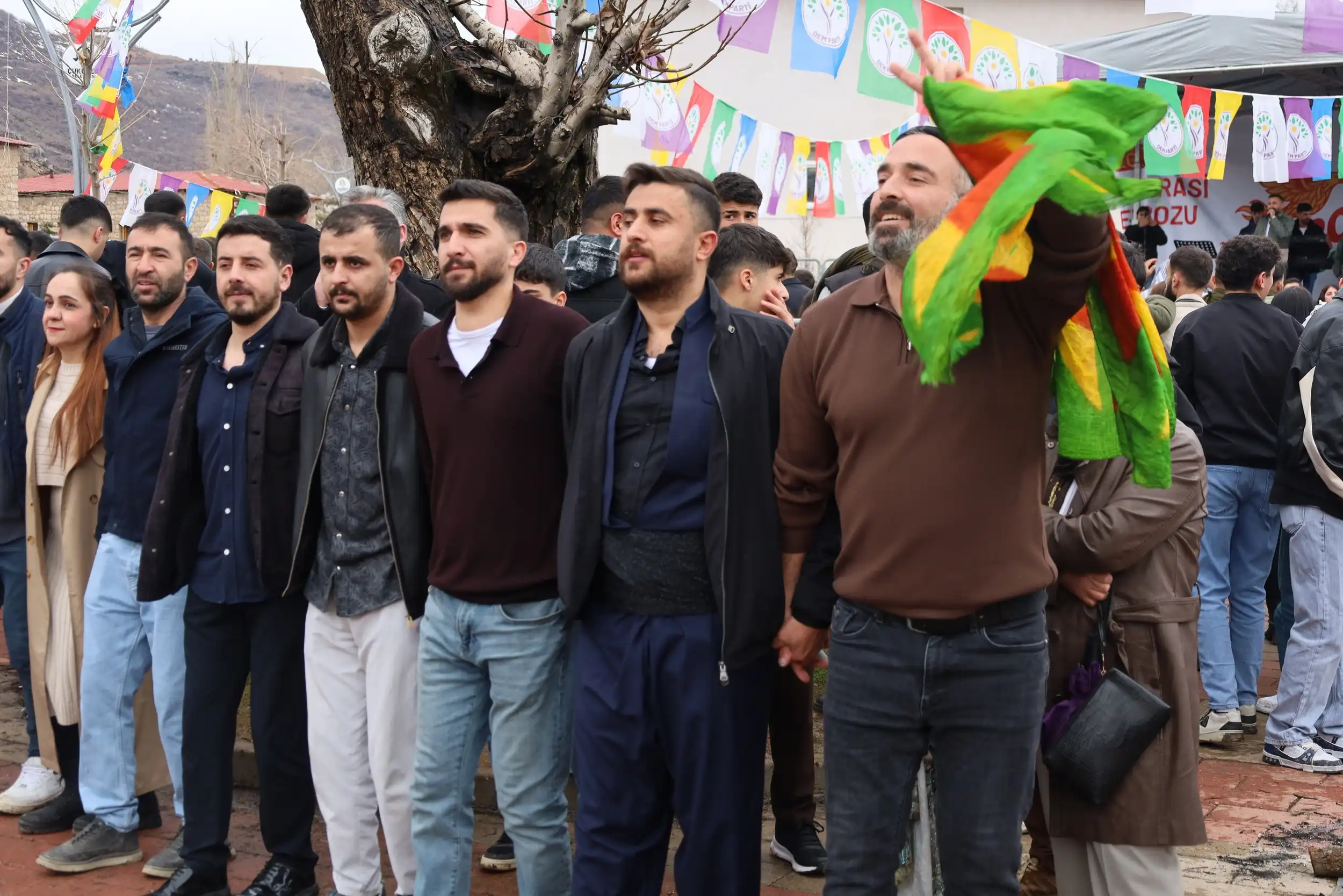 Colemêrg’in Çelê (Çukurca) ilçesinde “Özgürlük ve Demokrasi Newrozu” şiarıyla Newroz kutlaması gerçekleştirildi. Halkların Eşitlik ve Demokrasi Partisi (DEM Parti) eski belediye alanında gerçekleştirilen kutlamaya yüzlerce kişi katıldı. Newroz’a katılan halk, demokrasi ve özgürlük mücadelesinde hayatını kaybedenler için bir dakikalık saygı duruşunda bulundu. Kutlamada sık sık “Bijî Serok Apo”, “Bê Serok jiyan nabe” ve “Şehit namirin” sloganları attıldı.