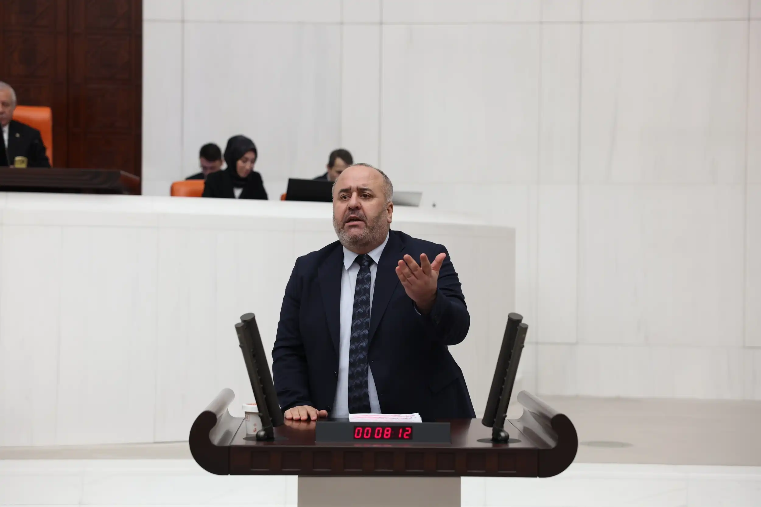 “Bakın grup başkanvekilimiz de dedi: ‘Gerçekten devletlerin terörü ile yüzleşmeden gariban Kürt halkını, mazlum Kürt halkını her yerde terörist olmakla yaftalıyorsunuz, üzerine gidiyorsunuz.’ Soruyoruz; Filistin halkı soykırımından geçirilirken İsrail devlet terörüne karşı ne yaptınız? Suriye’nin bütünlüğü diyorsunuz ya, İsrail Şam’ın 1 kilometre yakınına kadar bayrak diksin 3 maymunları oynayın. Sonra da Kürt’e geldim mi terörle mücadele değil mi? Böyle kardeşlik olmaz arkadaşlar. Böyle kardeşlik olmaz. Çok net söylüyoruz. Bir sürü analiz yapabiliriz. Bakın bir süreç başlatıldı. 27 Şubat’ta bir çağrı yapıldı. Kürt’ün tek isteği var sizden: Hukuk kapısından içeri girmek istiyor Kürtler. Kardeşinize bunu çok mu görüyorsunuz?