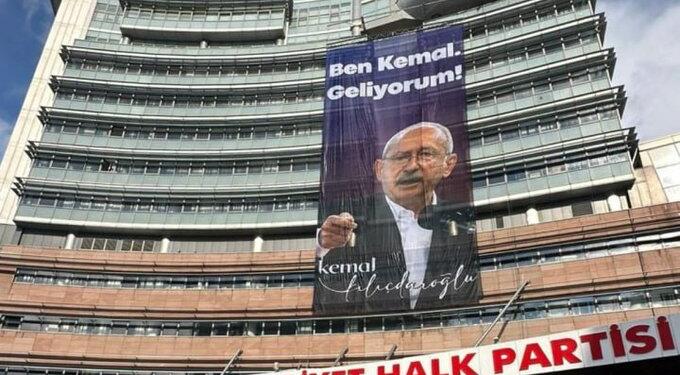 Altılı Masa’da adaylık tartışmaları devam ederken CHP Genel Merkezi’ne ‘Ben Kemal, geliyorum!’ pankartı asıldı