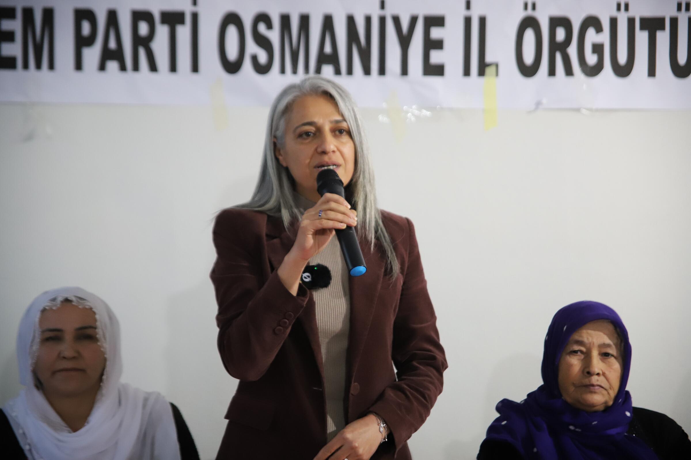 Osmaniye’de partililerle buluşan DBP Eş Genel Başkanı Çiğdem Kılıçgün Uçar, kayyımlar, ekonomik politikalar ve kimlik inkârına dikkat çekerek ‘Kaynaklar savaşa değil, yaşamı güçlendirmeye aktarılmalıdır. Kürt sorununun çözümünde gerçek muhataplık görmezden gelinemez’ dedi