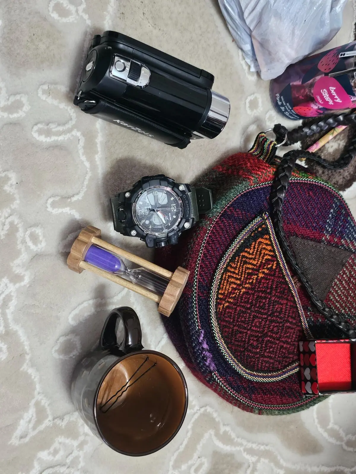Son cümlelerinin ardından kızına ait bir poşete doldurulmuş eşyalarını bizimle paylaştı. Poşetin içerisinde kıyafetleri, kalemleri, özel eşyaları, kamerası ve camı kırılmış ve durmuş saati yer alıyordu.
