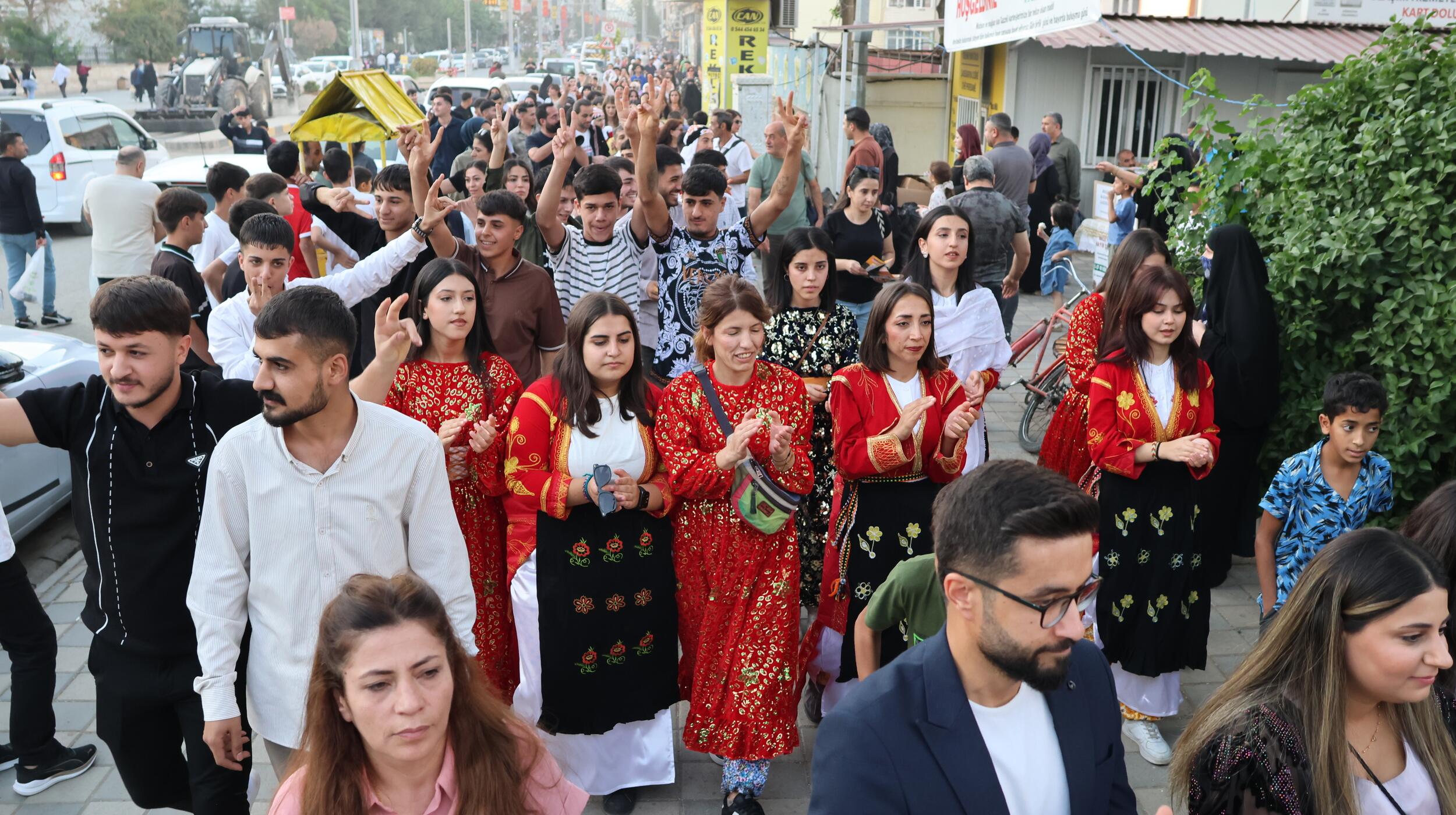 Esnaf ziyareti olarak tertiplenen etkinlik kısa sürede yüzlerce kişinin katıldığı festival yürüyüşüne dönüştü. Çevrede bulunan yurttaşlar zılgıt ve alkışlar ile destek verirken, yürüyüşte Kürtçe şarkılar seslendirildi. Sloganlar eşliğinde Birca Belek Parkı’na varan kitle, burada Kürtçe şarkılar eşliğinde halaya durdu. Yürüyüş yarın festivalin yapılacağı İtfaiye Alanı’nda son buldu.