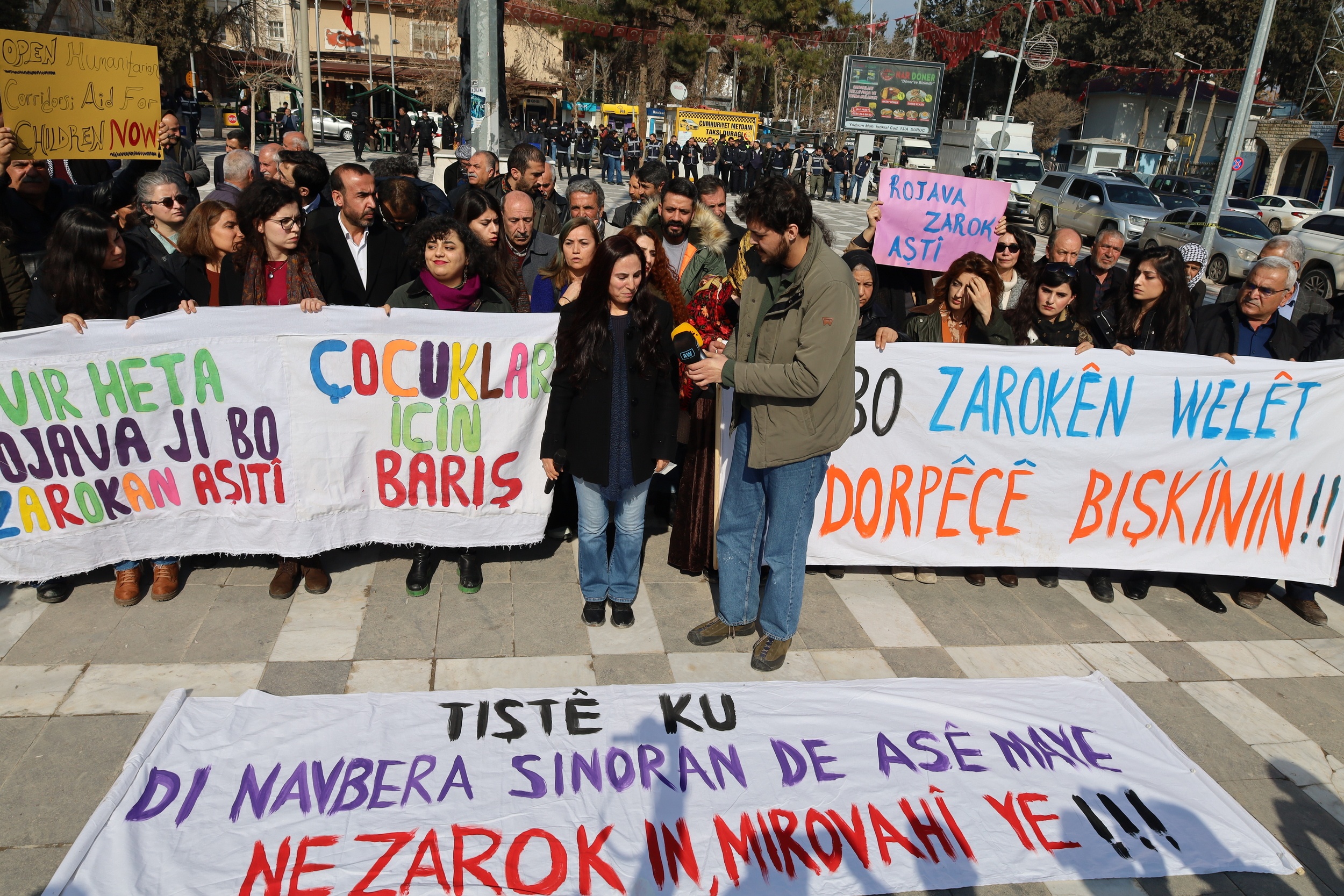 Çocuk Hakları Ağı ve Çocuklar için Barış İnisiyatifi’nin Pirsûs’ta yaptığı açıklamada, Mürşitpınar Sınır Kapısı’nın açılması talep edildi