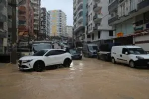 Mêrdîn’de sağanak yağış: Caddeler göle döndü