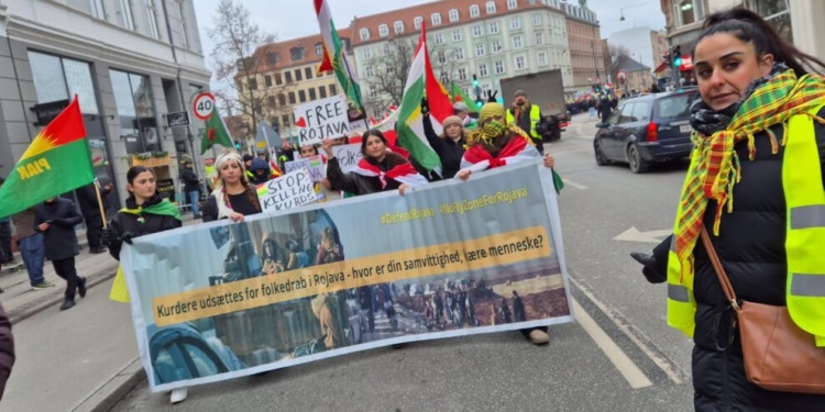 Danimarka’da binlerce Kürdistanlı ve destekçileri, Rojava’ya yönelik saldırıları protesto etmek için başkent Kopenhag’da yürüyüş ve miting düzenledi