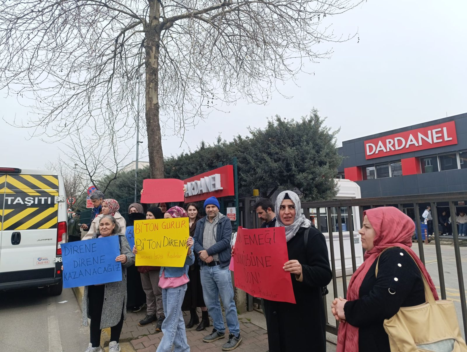 Direnişin 2’nci günüde de kadın işçiler Dardanel’in Dudullu OSB’de bulunan fabrikası önünde bir araya geldiler. Kadın işçiler haklarını alana kadar mücadelede kararlı olduklarını ifade ediyorlar.