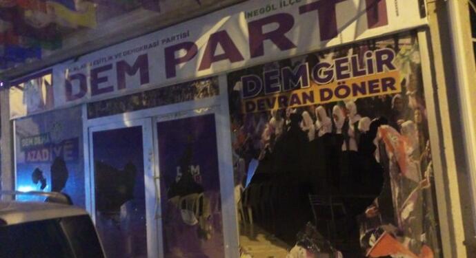 Halkların Eşitlik ve Demokrasi Partisi (DEM Parti) İnegöl ilçe binasına 4 Mart Pazartesi gecesi balta ile saldıran ve ilçe binasının dışındaki bir parti üyesine de balta ile saldırı girişiminde bulunan zanlı, emniyette ifadesi alındıktan sonra serbest bırakıldı.