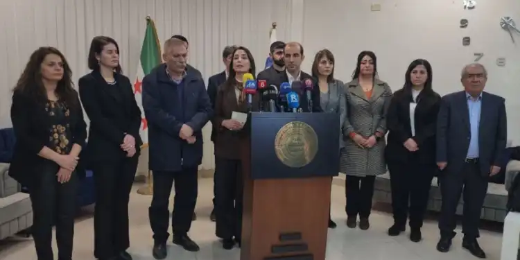DEM Parti Eş Genel Başkanı Tülay Hatimoğulları’nın da yer aldığı heyet, Rojava’da PYD ve Özerk Yönetim yetkilileriyle bir araya geldi. Hatimoğulları, ‘Bir kez daha sesleniyorum garantör ülkelere, görevinizi yerine getirmelisiniz’ dedi