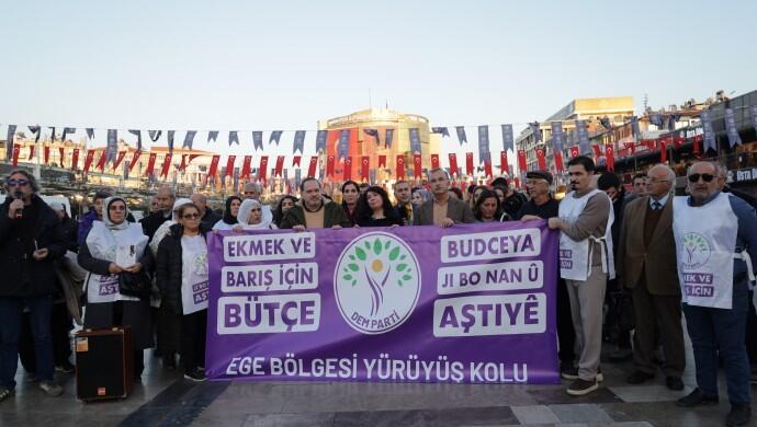 DEM Parti, Tekirdağ, Êlih, Samandağ ve Aydın olmak üzere 4 koldan ‘Ekmek ve Barış İçin Bütçe’ yürüyüşü başlattı. Tülay Hatimoğulları, ‘Bütçe demek bir ülkenin demokratik şekilde yönetilmesi demektir’ derken Tuncer Bakırhan ise ‘Hakkımızı almak için ekmek ve barış mücadelesini başarıya ulaştırmak için mücadeleye hepinizi çağırıyoruz’ dedi