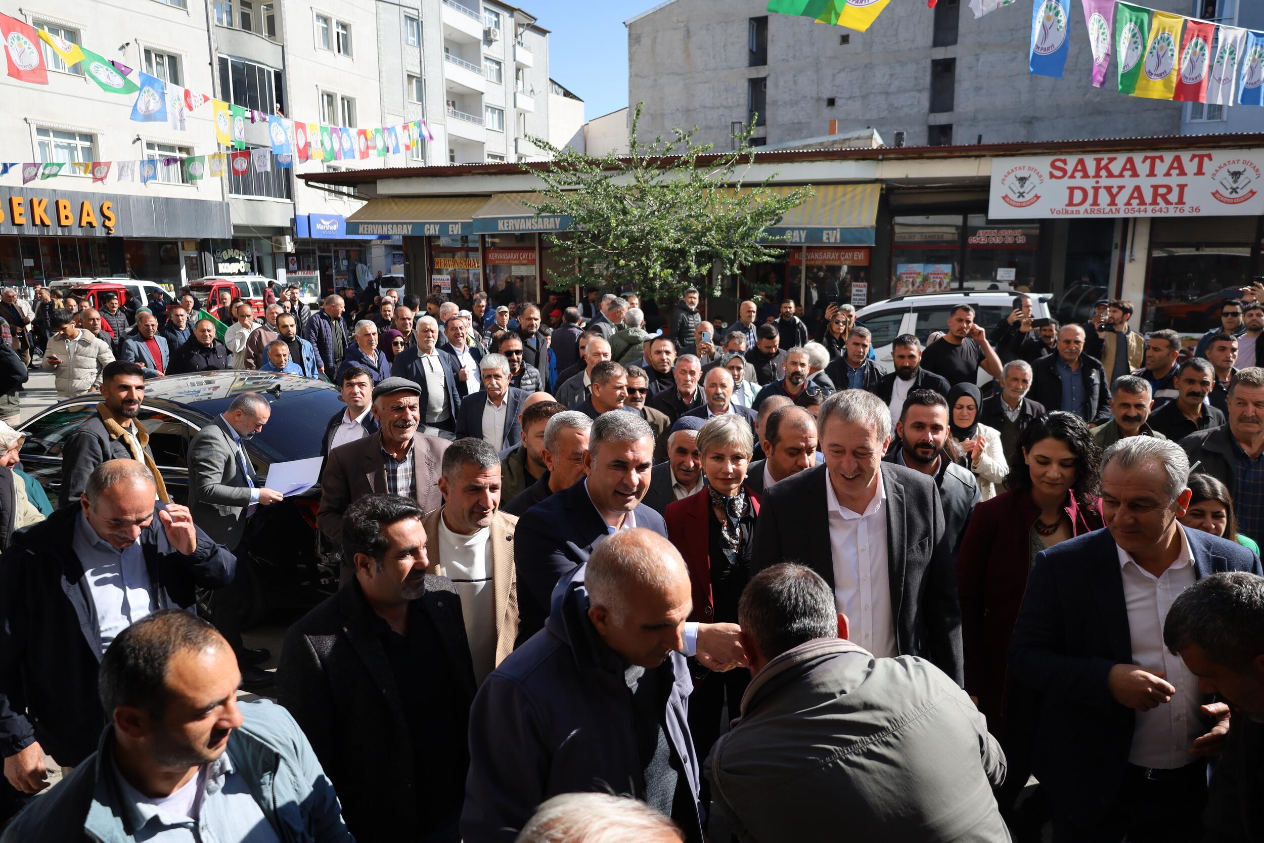 Halkların Eşitlik ve Demokrasi Partisi (DEM Parti) Îdir (Iğdır) İl Örgütü, DEM Parti Eş Genel Başkanı Tuncer Bakırhan’ın katılımıyla halk buluşması düzenledi. Buluşmaya katılmak için kente gelen Tuncer Bakırhan, havalimanı kavşağında kitlesel karşılandı. Tuncer Bakırhan, konvoy halinde kent merkezine geldi. Konvoy, kent merkezinde bulunan Cumhuriyet Caddesi’nde davul ve zurnayla karşılandı. Konvoydakiler, Basın Sokağı’nda bulunan DEM Parti Îdir İl Örgütü’ne kadar yürüyüş gerçekleştirdi.