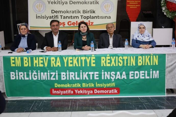 İnisiyatif Eşsözcüsü Mehmet Kamaç ise herhangi bir statü sahibi olmayan toplumların tarihin her döneminde statü arayışında olduklarını anımsatarak, “Statü sahibi olmamalarının sebebi ise birliklerini kuramamalarındandır. Yüzlerce yıldır Kürt halkı arasında bir birlik kurulamadı. Defalarca bunun tartışması ve çalışması yapıldı. Yüzyıldır Kürtlerin başına ne geldiyse birliklerini oluşturamadıkları için geldi. Ulusal birlikle bu coğrafyada yaşayan kimseyi dışarda bırakmamaya çalıştık. Ondan dolayı Demokratik Birlik İnisiyatifi Kürt ve Kürdistanî bir kuruluştur. Yani Kürdistan coğrafyasında yaşayan her kesimi kapsıyor. Bu coğrafyada yaşayan bütün diller, dinler bu çalışmanın birer parçasıdır. Her kişi ve her inançla birliğimizi kuracağız. Her kesimini de bu inisiyatifin bir parçası olmaya ve içinde yer almaya davet ediyoruz” diye konuştu.