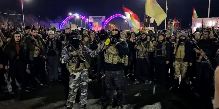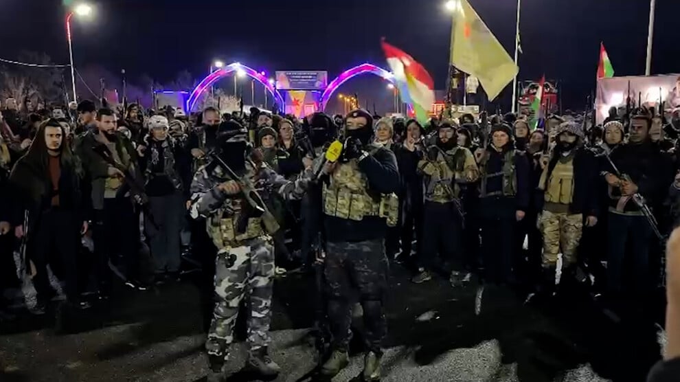 Rojava’ya yönelik HTŞ-DAİŞ ve Türkiye destekli grupların saldırılarına karşı Dêrik halkı seferberlik ilan ederek Halk Taburu kurdu. Törende konuşan YPG’li Seydo Dêrik, ‘Yan mirin, yan jiyan, yan serkeftin’ diyerek direniş kararlılığını vurguladı