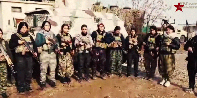 Dêrik’te YPJ ve YPG’li savaşçılar saldırılara ilişkin açıklama yaptı. Açıklamada, “Ne kadar saldırırlarsa saldırsınlar. Örgütlerimizi kesseler, bizi binalardan da atsalar. Asla irademizi teslim alamazlar. Kimse irademizi kıramaz. Biz Önder Apo’nun savaşçılarıyız. Biz devrimci halk savaşının savaşçılarıyız. Kimse bu ülkeyi teslim alamaz. Tüm halkımızı selamlıyoruz. Halkımızın savunmasını yapacağız. Vardık, var olacağız. Bijî serok Apo. Bijî berwedana YPJ-YPG.”