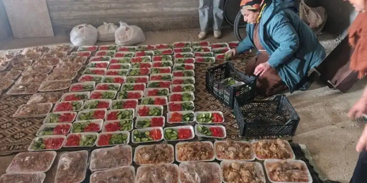 Dêrik Eyn Diwar bölgesinde yaşayan halk, şehirlerine sığınan halka yemek hazırlayıp dağıtıyor.