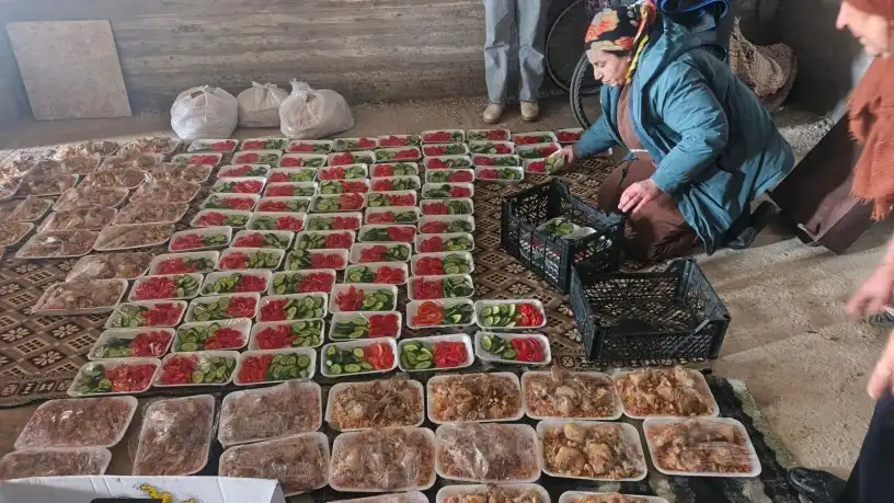 Dêrik Eyn Diwar bölgesinde yaşayan halk, şehirlerine sığınan halka yemek hazırlayıp dağıtıyor.