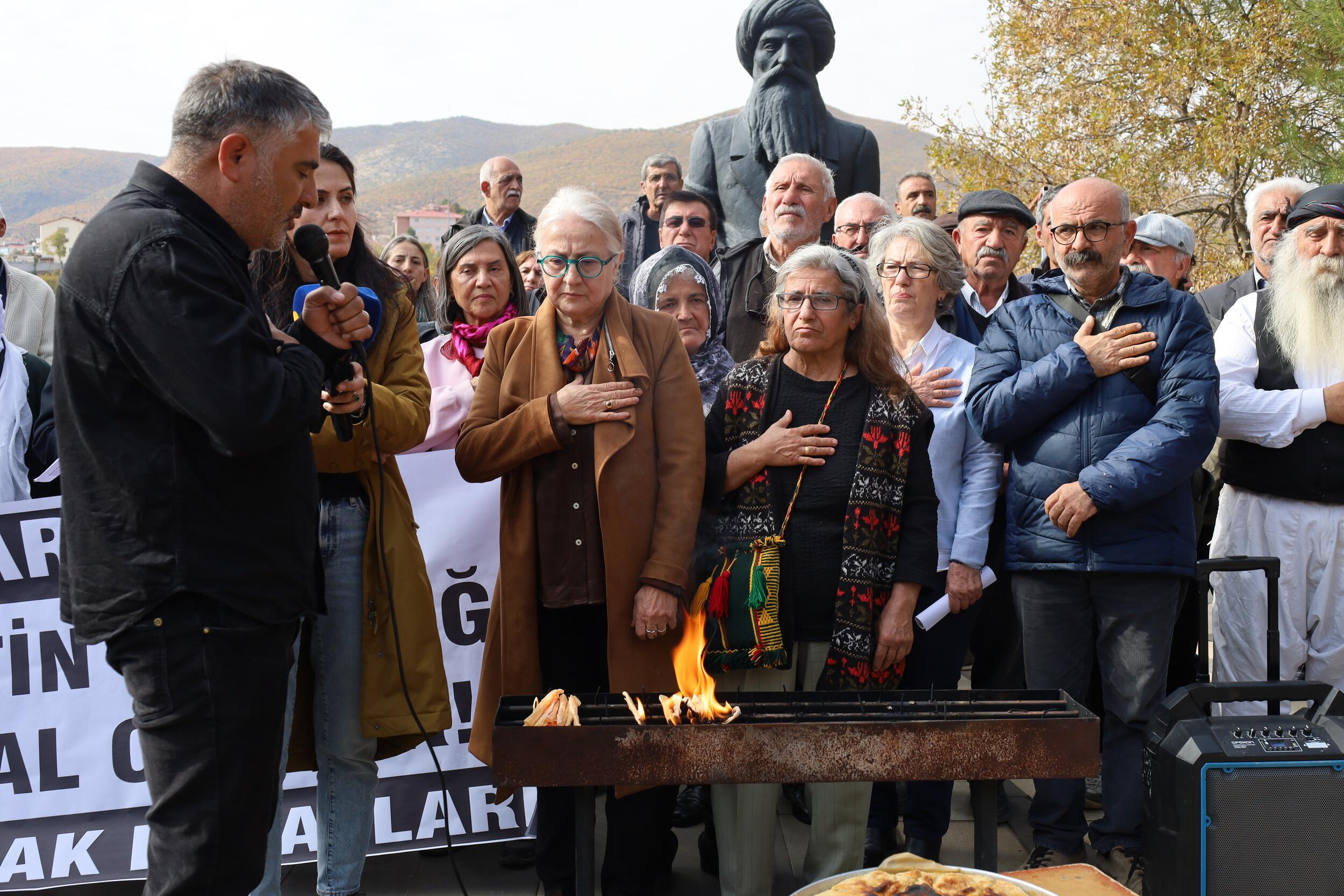 Burada konuşan Dêrsim Ocak Evlatları üyesi Şêx Çoban Ocağı Piri İbrahim Kete, “Kefensiz yatanların anıları önünde dardayız. Kürt sorununun çözümsüzlüğünün doğurduğu savaş süreçleri, birçok yıkım yarattı bu topraklarda. Kırk yıldır en yoğun şekilde bu yıkımı hep birlikte yaşıyoruz. Savaş çok şey yaşattı ve çok şey öğretti. Ama hepsinden daha çok barışın ne kadar kıymetli bir değer olduğunu öğretti bizlere.. Bizler bugün bu topraklarda yüzyıllardır rızalık, eşitlik, adalet, insan ve doğa sevgisiyle yoğrulmuş olan bir inancın yol evlatları olarak güncelde yürütülen barış çabalarına destek vermek için bir araya geldik” dedi.