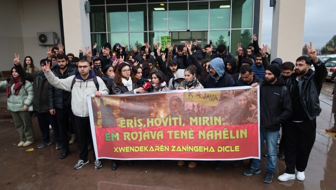 Dicle Üniversitesi öğrencileri Halep’in Şêxmeqsûd ve Eşrefiyê mahallelerine dönük yapılan saldırılara karşı Hukuk Fakültesi önünde bir araya gelerek yürüyüş düzenledi. Fen Fakültesine yapılan yürüyüşü polis ve özel güvenlik mensupları engellemeye çalıştı. Ablukaya alınan öğrenciler polis ablukası altında Rojava Marşı ve “Bijî Berxwedana Rojava” sloganları attı. Polisin müdahalesinden kaynaklı kimi öğrenciler fenalık geçirdi. Ablukadaki öğrenciler “Şehîd Namirin”, “Bijî Berxwedana Rojava”, “Rojava Rojhilate Kurdistan Yek Welat e” ve “Şehîd Ziyad namire” sloganları attı.