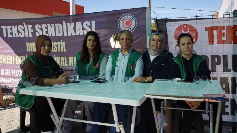 Digel Tekstil’de sendikalaştıkları gerekçesiyle yaklaşık bir yıl önce işten çıkarılan 15 işçi, Gaziemir’de bulunan Ege Serbest Bölgesi önünde direnişini sürdürüyor. Digel Tekstil işçileri, 17 Ocak’ta düşük ücretler ve insan onuruna aykırı çalışma koşullarını protesto ettikten sonra Teksif Sendikası’nda örgütlendi. Sendika fabrika içinde çoğunluğu sağlayarak yetki kazandı, ancak işveren toplu iş sözleşmesi yapmayı reddetti. Bu nedenle sendika yasal olarak tanınmazken, yetki belgesiyle ilgili dava süreci devam ediyor.