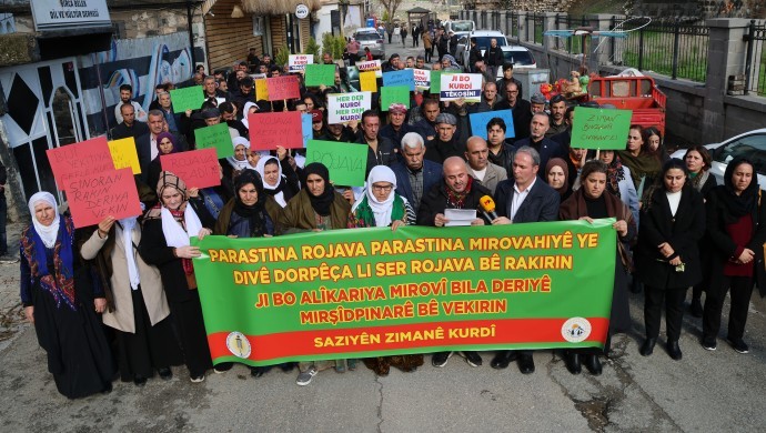 Kürtlerin hala katliam tehdidi ile yüz yüze olduğunun altını çizen Cahit Akıl, “Geçici hükümet hem Kürt kazanımlarını ortadan kaldırmak hem de anadilde eğitimin önünü kapatmak istemektedir. Bu planlarında Türkiye’nin parmağının olduğu aşikardır. Kürtlerin bütün hakları güvence altına alınmalıdır. Bizler Kürt dili kurumları olarak hiçbir zaman yapılan saldırıları kabul etmeyeceğiz. Burada barış konuşulurken Rojava’da saldırıların olması kabul edilemez. Suriye’de bütün halklar kendi kimlikleri ve dilleri ile yaşamalıdır. Tekçi ve cihatçı zihniyetler hiçbir zaman halkların temsili olamaz. Bütün halklar Rojava’ya dönük desteklerini sürdürmeli, dayanışmalarını güçlendirmelidir. Yaşasın Kürt halkı, yaşasın Rojava direnişi. Jin, jiyan, azadî/ kadın yaşam özgürlük” şeklinde konuştu.