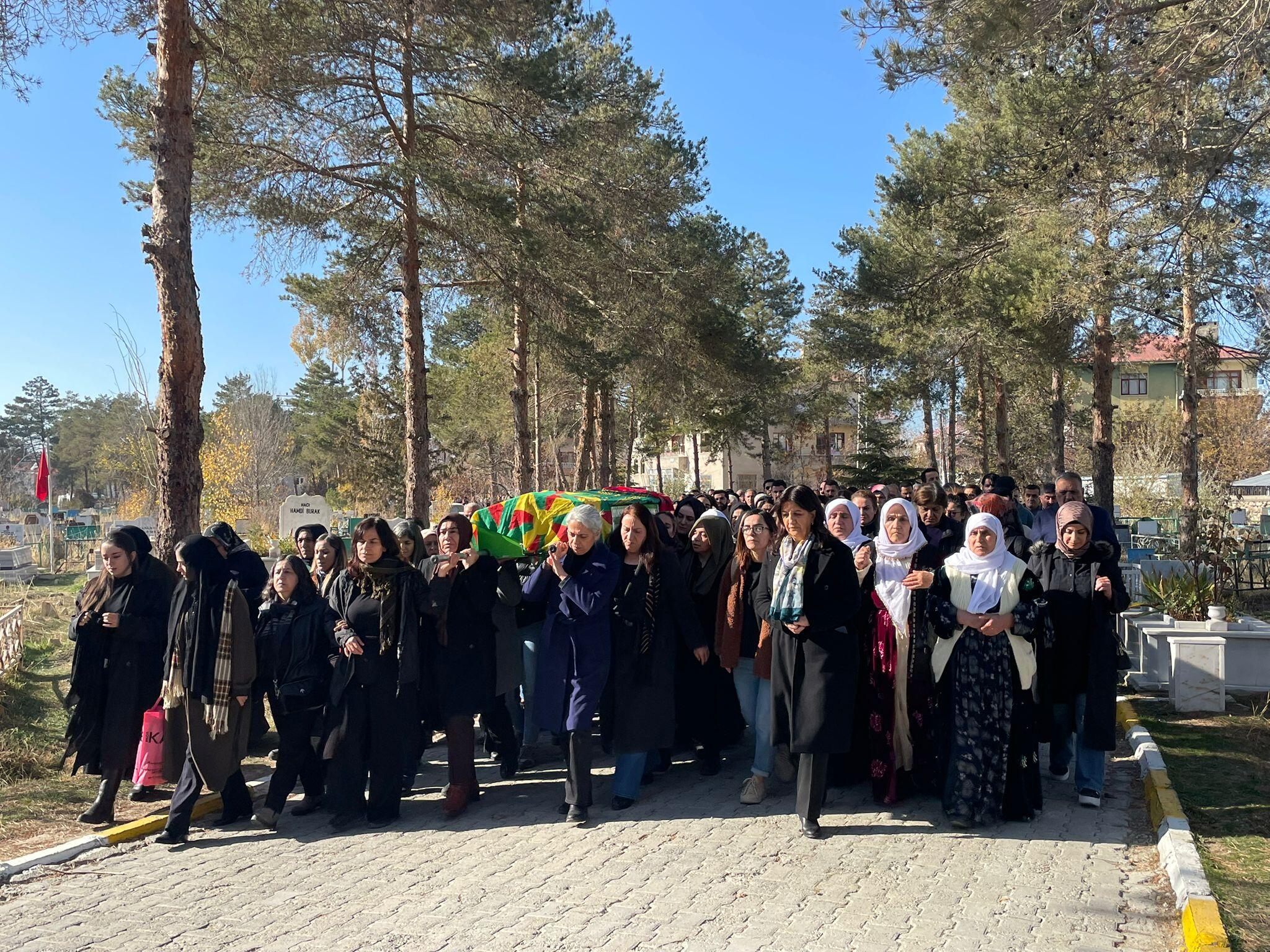 Dün akşam saatlerinde Amed’den Wan’a getirilen Dilan Karaman’ın cenazesi, mor yazma ve yeşil, sarı ve kırmızı renklerle sarılı olarak kadınların omzunda taşındı.