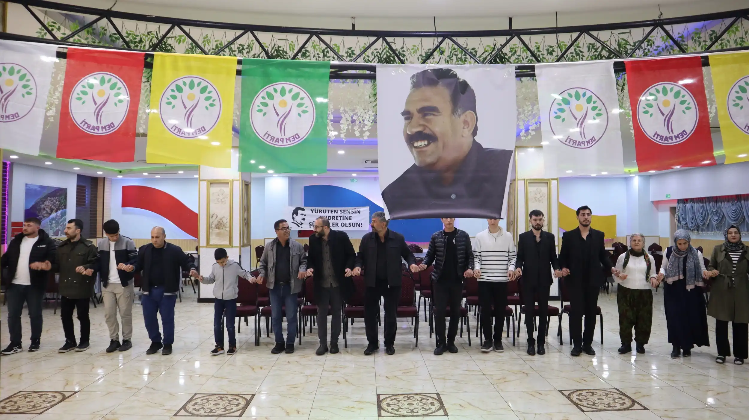 Konuşmaların ardından etkinlik ezgilerle devam etti. Salonda sık sık “Bijî Serok Apo” ve “Bê Serok jiyan nabe” sloganları atıldı. Kutlama, çekilen halaylar, zılgıtlar ve alkışlarla coşkulu bir şekilde sona erdi.