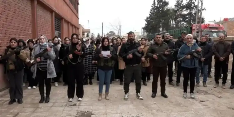 Dirbêsiyê kentinde seferberliğe katıldığını duyuran öğretmenler, ‘DSG ve YPJ desteğimizi gösteriyoruz. Şehitlerin yolunu izleyeceğiz ve sonuna kadar direneceğiz’ dedi
