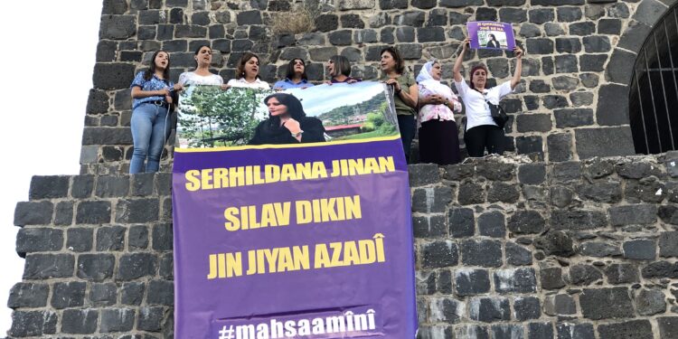 İran ve Kürdistan Eyaleti’nde kadınların başlattığı isyana destek eylemleri de sürüyor. Diyarbakır’da tarihi Diyarbakır Surlarında kadınlar Jîna Mahsa Amini için bir araya geldi. Eyleme HDP Milletvekilleri Meral Danış Beştaş, Dilan Dirayet Taşdemir, Gülistan Kılıç Koçyiğit, Dersim Dağ, Remziye Tosun, Ayşe Acar Başaran ve Feleknas Uca da katıldı. Kadınlar Diyarbakır Surlarından Amini’nin posterini sarkıtarak kadınların direnişini selamladı.