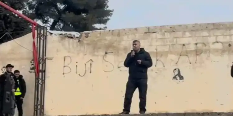 Demokratik Suriye Güçleri (DSG) Genel Komutanlığı Üyesi Cemîl Kobanê, Kobanê kentindeki Şehîd Egîd Meydanı’nda, binlerce Kobanêlinin katılımıyla bir konuşma yaptı.