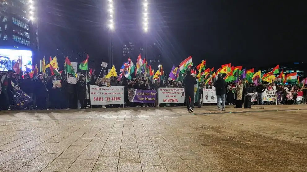 İngiltere’nin Leeds kentinde Kürdistanlılar, kent merkezinde bir araya gelerek çete saldırılarını protesto etti ve Türk devletinin İŞİD ve türevlerine olan desteğine son verilmesi ile İngiltere hükümetinin HTŞ’ye karşı harekete geçmesi istendi. Sık sık, “Terörist Colani”, “Terörist Türkiye”, “Kürt soykırımına son”, “Bijî Kürdistan” ve “Bijî Berxwedana Rojava” sloganları atılırken, Colani ve HTŞ’nin katliamlarını gösteren fotoğraf ve pankartlar taşındı.