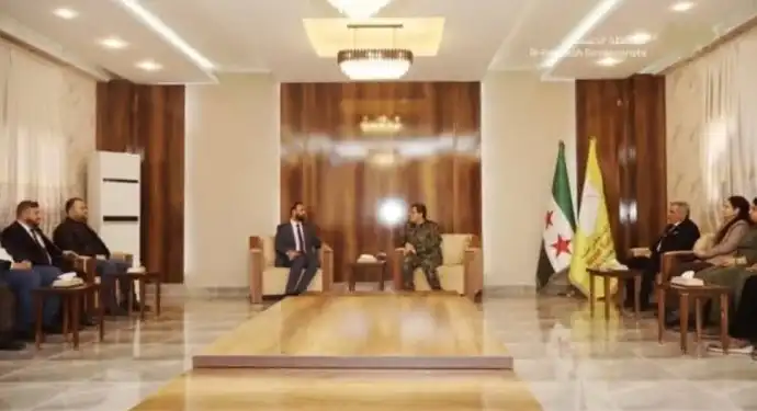 SDG Genel Komutanı Mazlum Ebdî ve Özerk Yönetim Dış İlişkiler Dairesi Eşbaşkanı Îlham Ehmed, geçici Cumhurbaşkanı Ahmed El Şara’nın temsilcisi ile Hesekê’de görüştü