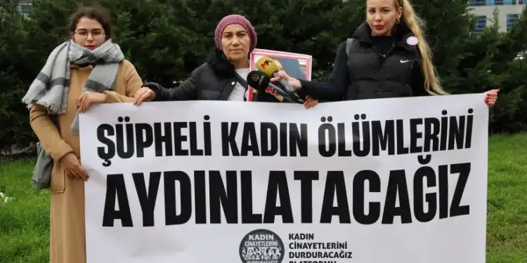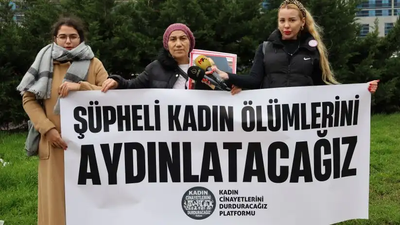 Karara tepki gösteren Kadın Cinayetlerini Durduracağız Platformu (KCDP), adliye önünde basın açıklaması düzenledi. Açıklamada, “Şüpheli kadın ölümlerini aydınlatacağız” pankartı açıldı.