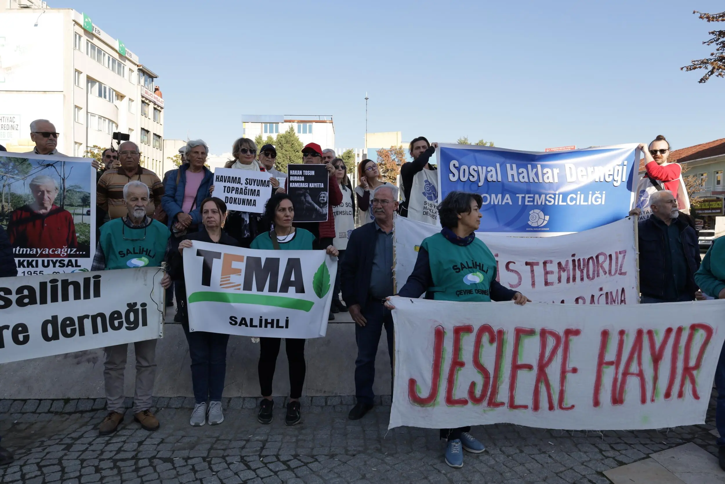 Kitle ardından Manisa’nın Salihli ilçesine geçti ve ilçedeki Demokrasi Meydanı’nda çevre örgütleriyle bir araya geldi. “JES’lere hayır”, “İklimi değil yasayı değiştir” pankartlarının açıldığı eylemde sık sık “Birleşe birleşe kazanacağız” sloganları atıldı.