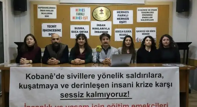İnsanlık ve Yaşam için Eğitim Emekçileri, HTŞ, DAİŞ ve Türkiye’ye grupların kuşatması altında bulunan Rojava’ya yönelik saldırılara ilişkin yazılı bir açıklama yaptı. Açıklamada, özellikle Kobanê’de giderek derinleşen insani krize dikkat çekilerek acil önlemler alınması çağrısı yapıldı.