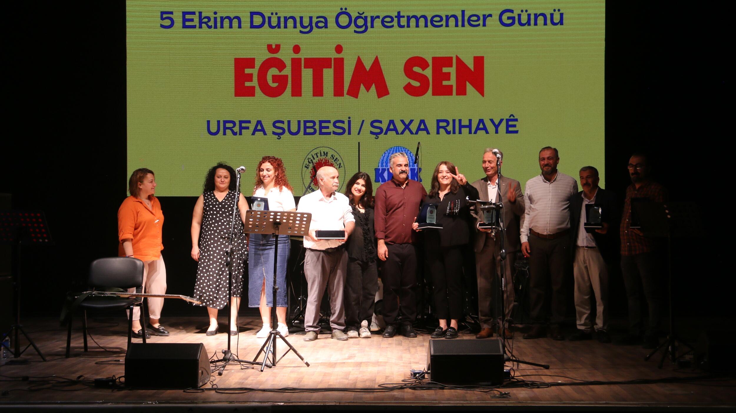 Eğitim ve Bilim Emekçileri Sendikası (Eğitim Sen) Riha (Urfa) Şubesi, 5 Ekim Dünya Öğretmenler Günü’nü Urfa City AVM’de bulunan konferans salonunda düzenlediği etkinlikle kutladı. Özgürlük ve demokrasi mücadelesinde hayatını kaybedenler için bir dakikalık saygı duruşunun ardından Eğitim Sen Riha Şubesi Eşbaşkanı Özlem Ulutaş Şengül, eğitim emekçilerinin tüm zorluklara rağmen yürüttüğü hak mücadelesine dikkat çekti.