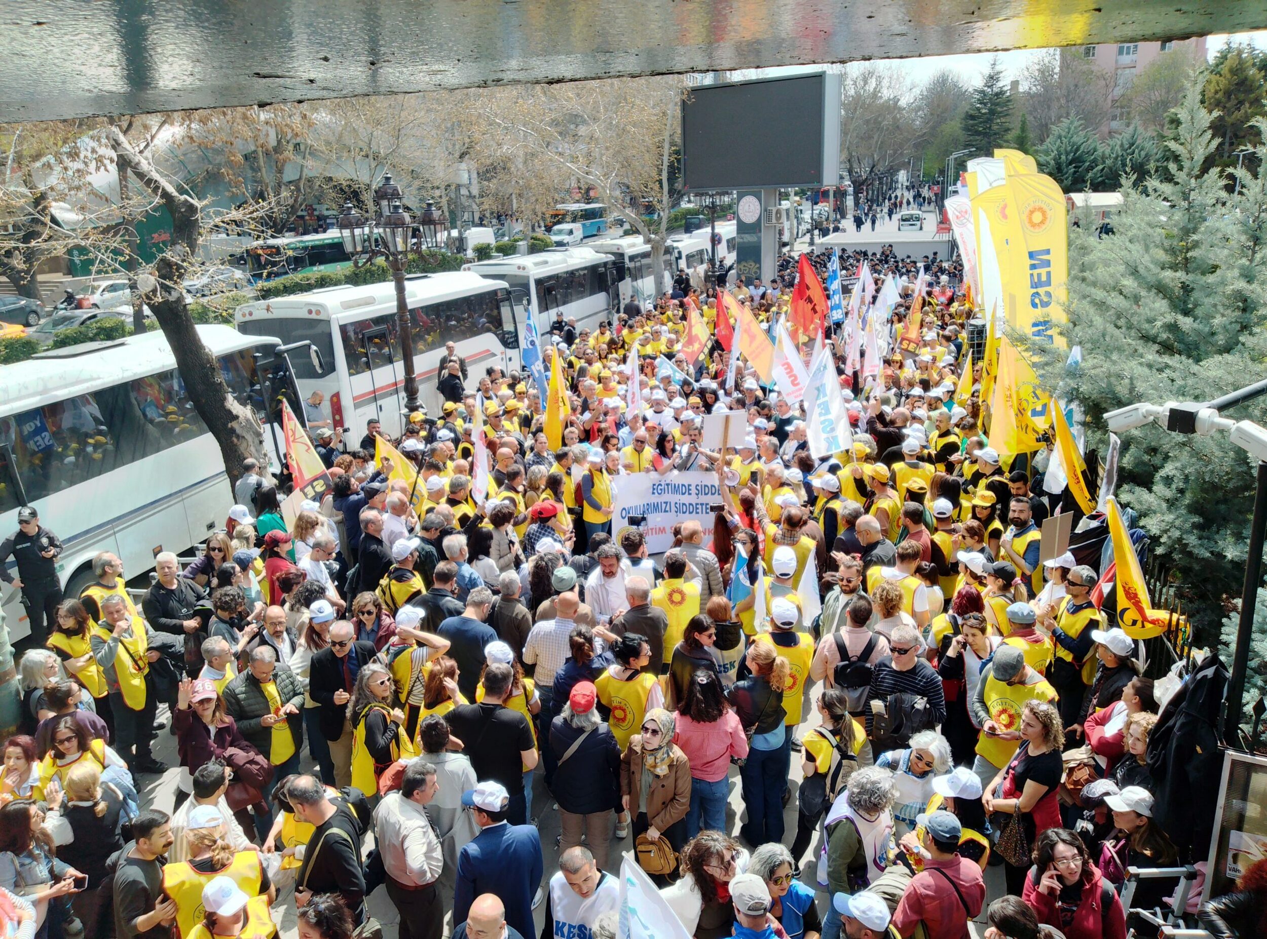 Üretimden gelen güçlerini kullanarak iş bıraktıklarını belirten Kara sözlerini şöyle tamamladı: “Bu eylem yalnızca bugüne değil, geleceğimize sahip çıkma iradesidir. Bu şiddet iklimine zemin sunanlara karşı mücadele etmek sadece eğitim emekçilerinin, eğitim sendikalarının değil, hepimizin görevidir. Başta veliler olmak üzere tüm toplumu bu haklı mücadeleye destek vermeye çağırıyoruz. Okullarda ve işyerlerinde tüm kamu emekçilerini, işçileri bu eyleme katılmaya, emek ve demokrasi güçlerini illerde devam eden yaşam nöbeti eylemlerimizle dayanışmaya davet ediyoruz.”