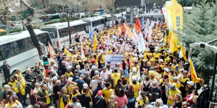 Kamu Emekçileri Sendikaları Konfederasyonu (KESK) Sêwereg (Siverek) ve Mereş’te okullarda yaşanan silahlı saldırılara karşı Eğitim ve Bilim Emekçileri Sendikası’nın (Eğitim Sen) Eğitim Bakanlığı önünde ikinci gününde devam eden “Yaşam Nöbeti”ne destek vermek için Yüksel Caddesi’nde bir araya geldi. Bakanlığa yürümek isteyen kitle, polis engeliyle karşılaştı. Polis barikatını aşan KESK’liler, nöbet tutulan alana geldi. “Eğitimde şiddete hayır, okullarımızı şiddete teslim etmeyeceğiz” pankartı açılan eylemde konuşan KESK Şubeler Platformu Dönem Sözcüsü İbrahim Kara, “Geleceğimizi emanet edeceğimiz gençlerimizin nasıl bu noktaya sürüklendiği sorusu, bugün milyonların ortak sorusudur. Bu sorunun muhatabı ise çeyrek asırdır ülkeyi yöneten iktidarın kendisidir” dedi.