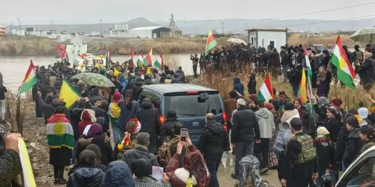 Hesekê’de yaşamını yitiren Ehmed Hêmin Omer’in cenazesi, Qamışlo’da düzenlenen cenaze töreninin ardından Sêmelka Kapısı’ndan geçirilerek Federal Kürdistan Bölgesi’ne götürüldü