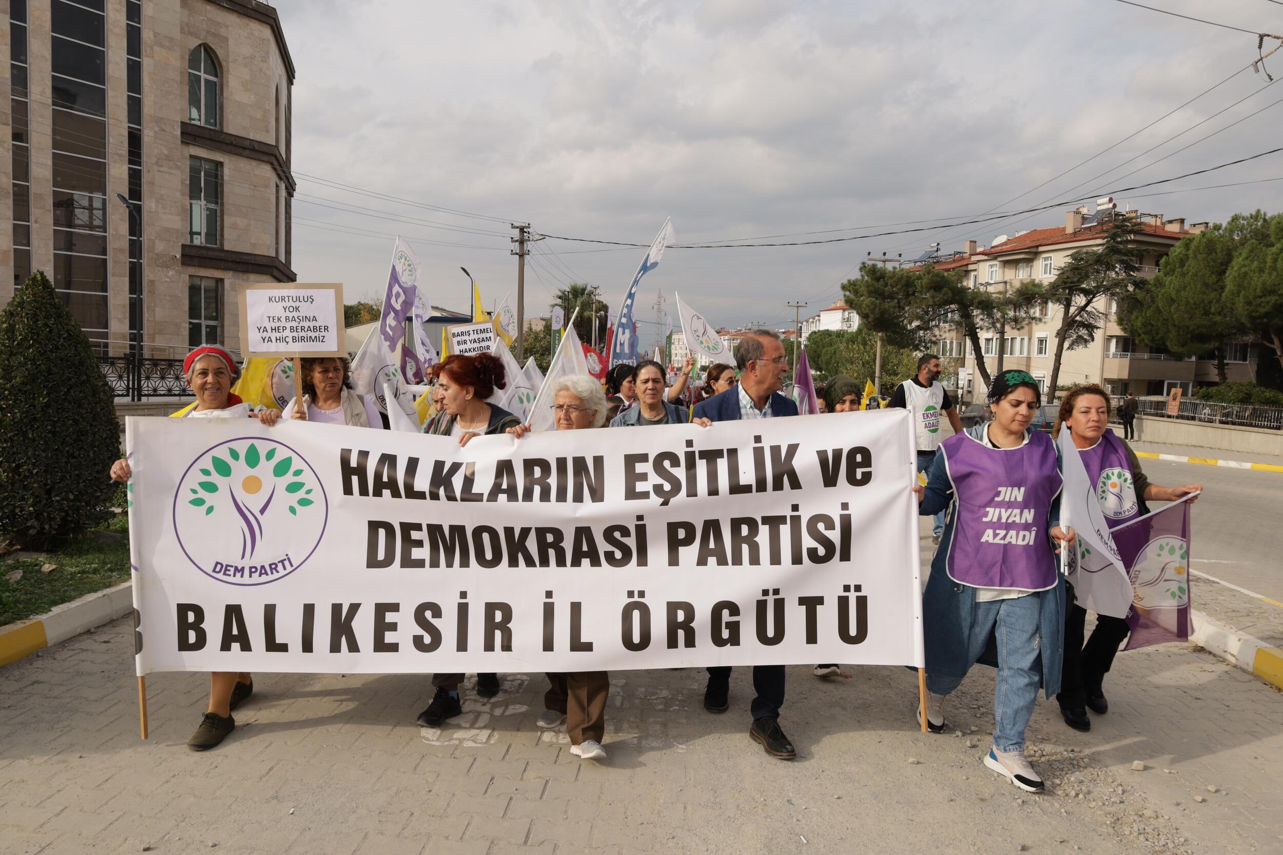 Körfez Emek ve Demokrasi Güçleri, Balıkesir Burhaniye Cumhuriyet Meydanı’nda “Ekmek, toprak ve adalet için halk buluşması” gerçekleştirdi. Miting alanına yürümek için Eski Kütüphane önünde kortejler oluşturan siyasi parti ve sivil toplum örgütleri, buradan meydana yürüdü. Mitinge Halkların Eşitlik ve Demokrasi Partisi (DEM Parti) İzmir Milletvekili İbrahim Akın, Emek Partisi (EMEP) İstanbul Milletvekili İskender Bayhan’ın yanı sıra binlerce kişi katıldı. Miting konuşmaları demokrasi ve özgürlük mücadelesinde yaşamını yitirenler için yapılan saygı duruşunun ardından başladı.