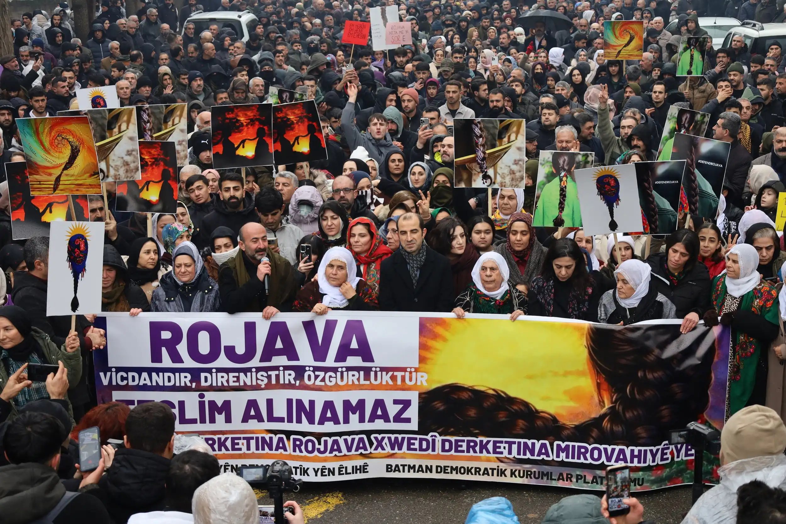 Rojava’ya dönük saldırılarına karşı Êlih’te kitlesel yürüyüş yapılıyor