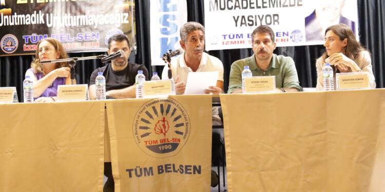 Kamu Emekçileri Sendikaları Konfederasyonu’na (KESK) bağlı Tüm Belediye ve Yerel Yönetim Hizmetleri Emekçileri Sendikası (Tüm Bel-Sen) İzmir Şubesi Kültürpark Gençlik Tiyatrosu’nda “Kayyıma karşı mücadelenin neresindeyiz, emekçiler ne yapmalı” konulu panel düzenledi. Panelin düzenlendiği salona “2 Temmuz 1993’ü unutmadık unutmayacağız” ve 1994 yılında İzmir’de katledilen Tüm Bel- Sen eski yöneticisi İkram Mihyaz’ın fotoğrafının olduğu pankartlar asıldı. Moderatörlüğünü Tüm Bel-Sen İzmir 2 No’lu Şubesi Başkanı Nihat Filiz’in yaptığı panele yerlerine kayyım atanan Êlih (Batman) Belediyesi Eşbaşkanı Gülistan Sönük ile Pulur (Ovacık) Belediyesi Başkanı Mustafa Sarıgül, Akademisyen Levent Dölek ve Tüm Bel-Sen İstanbul 1 No’lu Şube Başkanı Meryem Göktepe Türkmen konuşmacı olarak katıldı. Panel 2 Temmuz Madımak Katliamı’nda yaşamını yitirenlerin ve İkram Mihyaz’ın anısına yapılan saygı duruşu ile başladı.