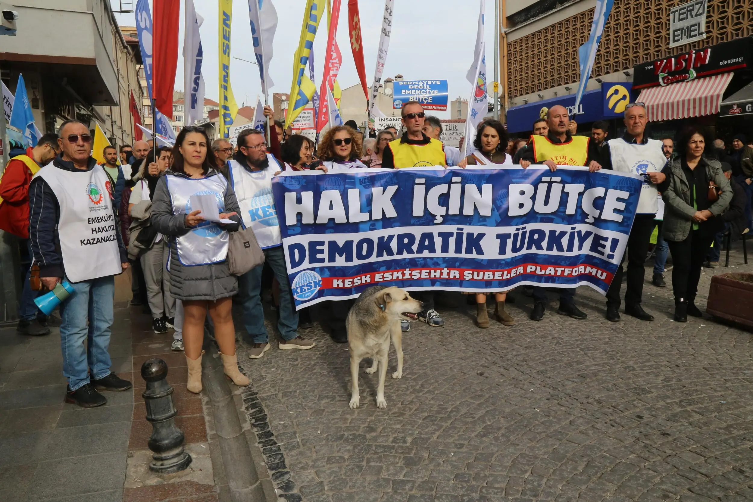 Eskişehir’de Köprübaşı’nda toplanan kamu emekçileri “Halk için bütçe demokratik Türkiye” pankartı açıp yürüyüş düzenledi. Emekçiler, “Halka bütçe savaşa değil” ve “Direne direne kazanacağız” sloganları atarak Yediler Parkına yürüdü. Kentteki diğer sendikalar ve siyasi partilerinde destek verdiği yürüyüş sonrası, KESK Şubeler Platformu Dönem Sözcüsü Umut Özge Yılmaz açıklama yaptı.