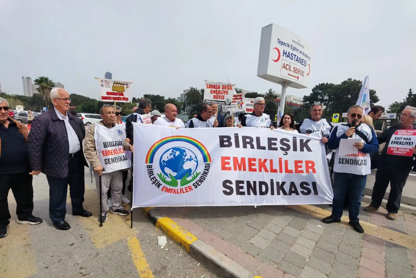 Birleşik Emekliler Sendikası, İzmir Tepecik Eğitim Araştırma Hastanesi önünde “Sağlıkta emeklilere öncelik verilmesi, randevu sorunu ve emekliye bütçe” talebiyle basın açıklaması yaptı