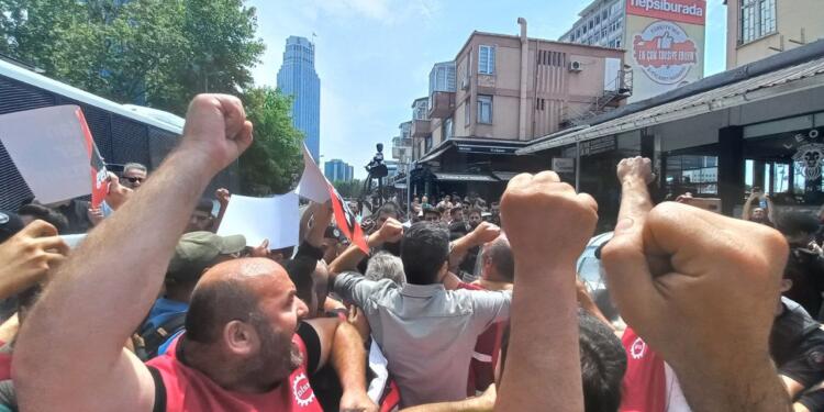 Beşiktaş Kaymakamlığı’nın eylem yasağına karşın Sabancı Holding önünde yaptıkları eylemi devam ettiren EnerjiSA işçileri ve onlara destek olmak için orada olan sendika temsilcileri gözaltın alındı
