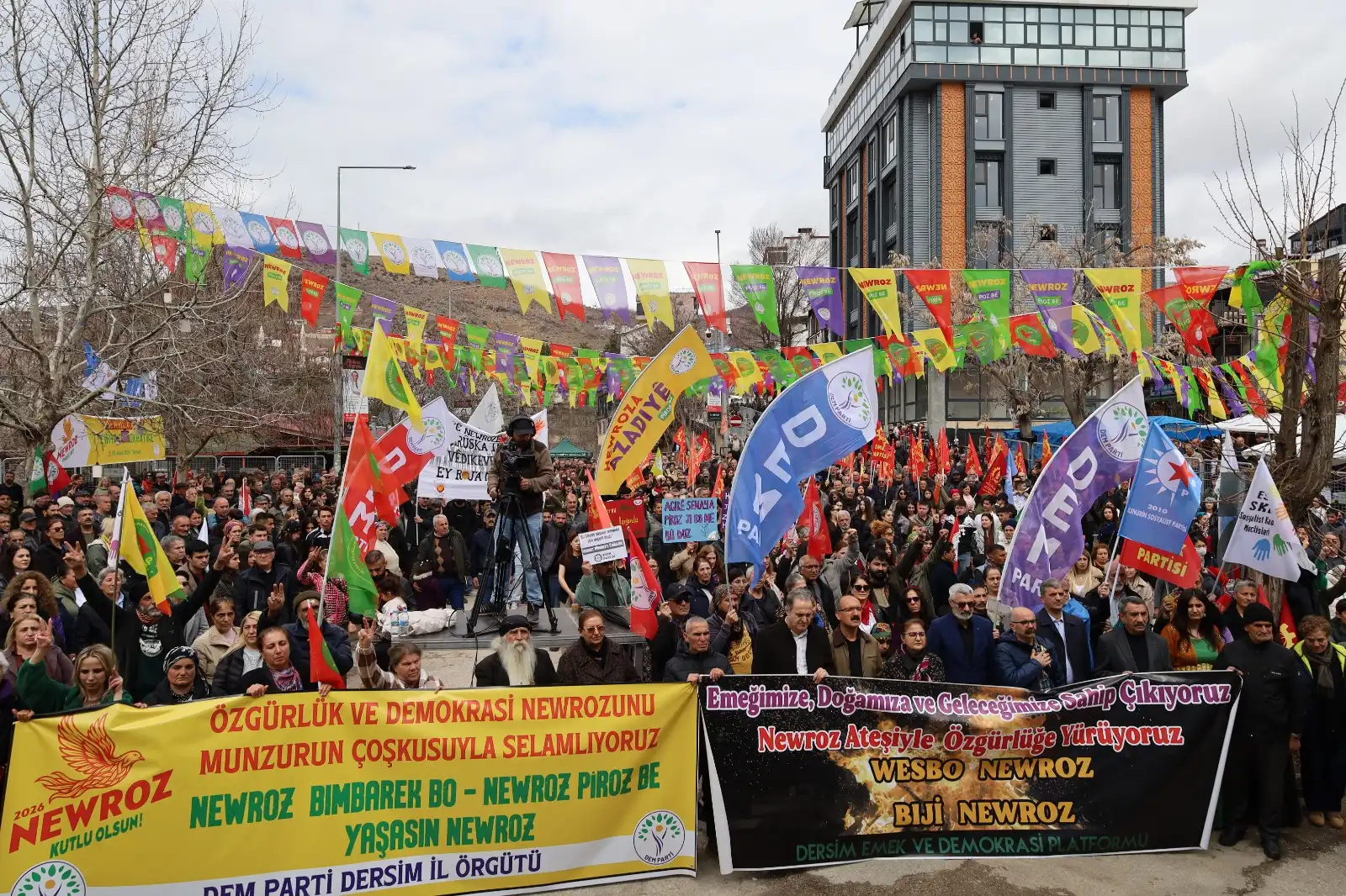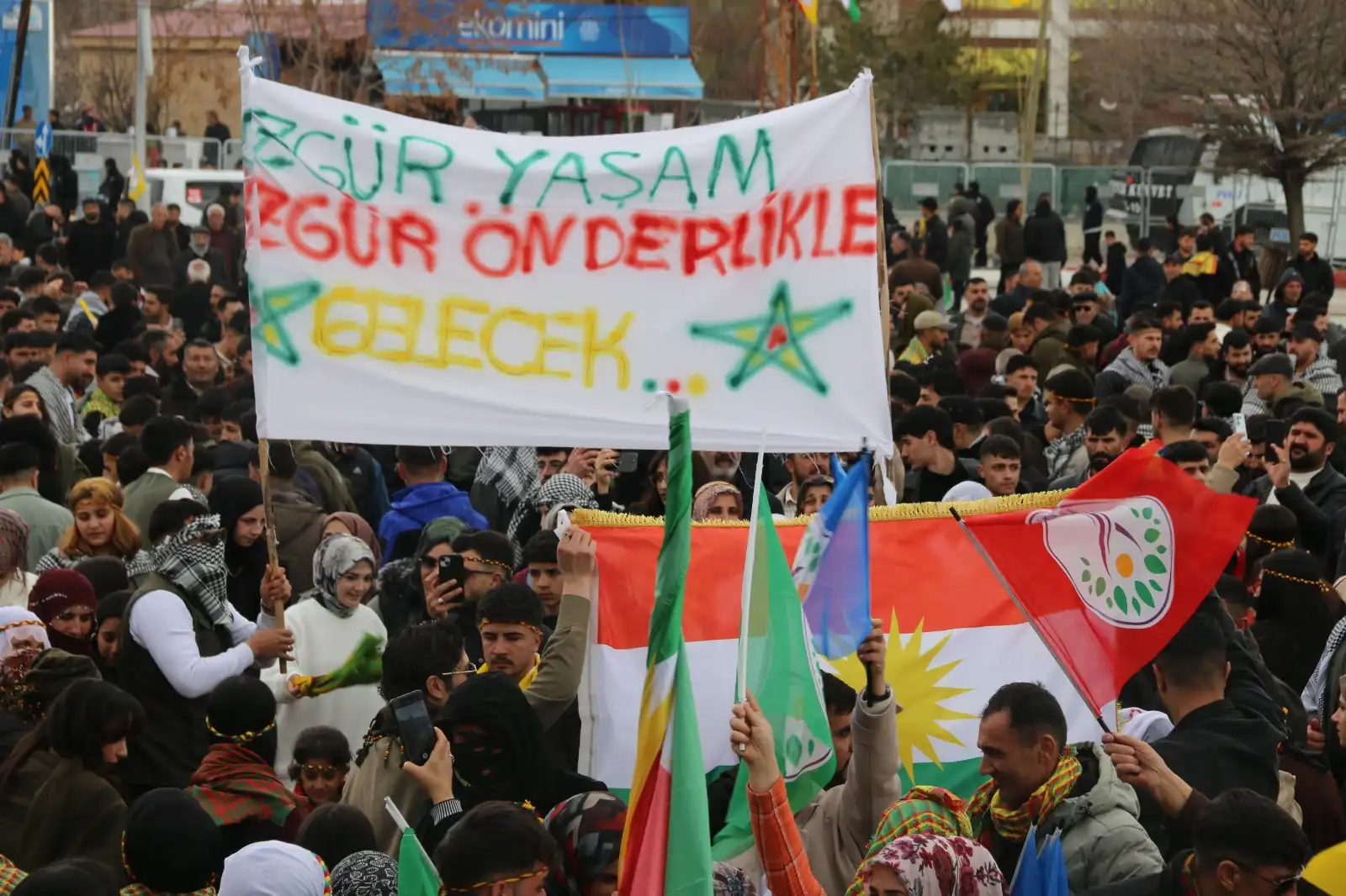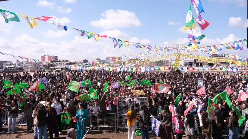 DEM Parti İl Eşbaşkanı Veysi Dilekçi, “Kürtler 50 yıldır aralıksız bir mücadele yürütüyor. 27 Şubat’ta Kürt Halk Önderi Abdullah Öcalan, ‘Barış ve Demokratik Toplum Süreci’ başlattı. İki yıldır bizler bu manifesto ışığında Newroz’u yapıyoruz ve önder Öcalan’ın çağrısına sahip çıkıyoruz. Kürt halkı bu yıl da bu çağrıya daha çok sahip çıkıyor ve sürecin ikinci aşaması üzerine ne düşüyorsa yapacaktır. Ama bunun karşılığında da devlet Sayın Öcalan’ın fiziki özgürlüğünü sağlamalı ve özgür çalışır koşullarını sağlamalıdır. Şuan İran’da bir savaş var. Bu savaşın bitirilmesi ve halkların kendi haklarına kavuşması için Sayın Öcalan’ın paradigması hayata geçirilmelidir. Bu hayata geçirilse bu savaş biter ve barış tüm dünyaya yayılır” dedi.