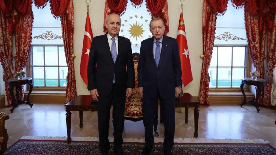 Cumhurbaşkanı ve AKP Genel Başkanı Tayyip Erdoğan ve Meclis Başkanı Numan Kurtulmuş, Cumhurbaşkanlığı Dolmabahçe Çalışma Ofisi’nde bir araya geldi. Erdoğan ve Kurtulmuş, Meclis’te kurulan Milli Dayanışma Kardeşlik ve Demokrasi Komisyonu’nun İmralı’da Kürt Halk Önderi Abdullah Öcalan’la görüşmeden sonra bir araya geldi.