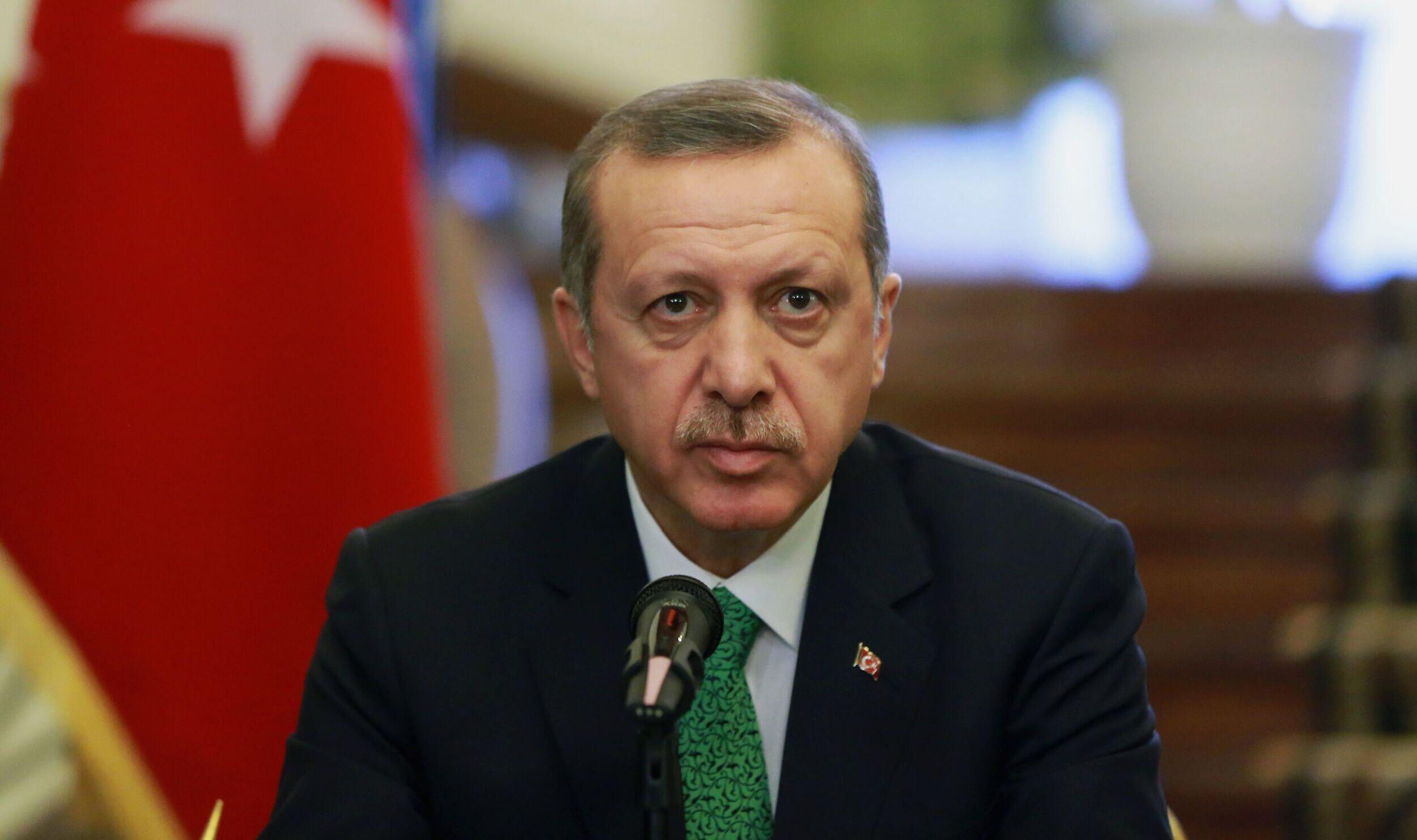 Turkish Prime Minister Recep Tayyip Erdogan attends a news briefing in a ceremony for signing agreements between Iranian and Turkish officials in Tehran, Iran, Wednesday, Jan. 29, 2014. Erdogan arrived in Tehran for talks with Iranian leaders on bilateral ties and regional issues including Syria. (AP Photo/Ebrahim Noroozi)